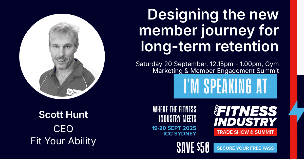 Fitness Enhancement and Fit Your Ability CEO and founder Scott Hunt will be speaking at the Sydney Fitness Industry Expo on how to keep new members long term. With over 20 years of experience and clients who have stayed for decades, Scott will share practical, proven strategies for member retention that you can apply directly in your own business.